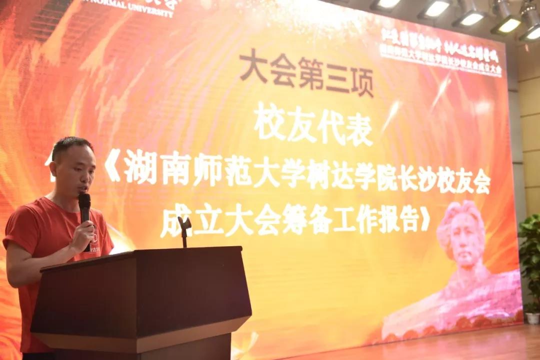 校友代表张小华作树达学院长沙校友会成立筹备工作报告。李皓宣读了《关于成立太阳成集团tyc树达学院长沙校友会的批复》。