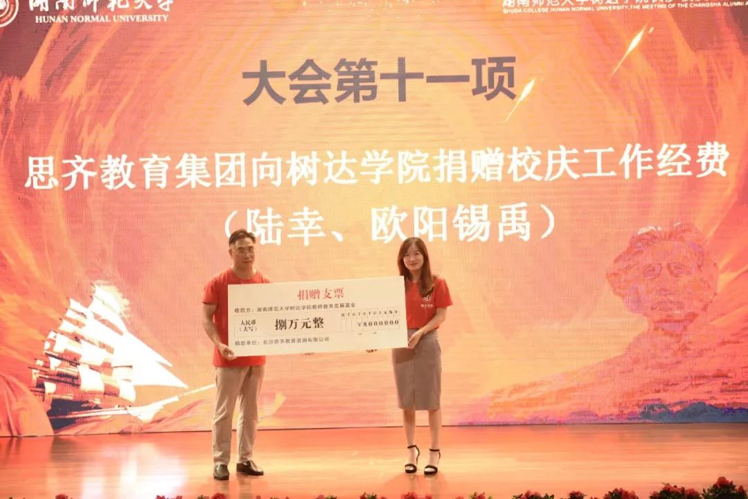 思齐教育集团行政总裁陆幸代表集团向学院捐赠了校庆工作经费