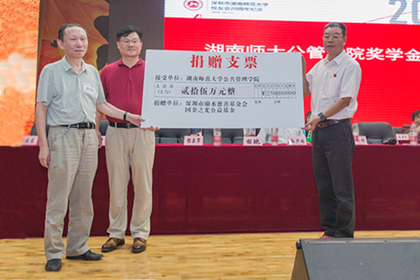 会上,校友向学校和华侨城中学赠送了电子黑板,深圳校友会给纪念活动赞助人颁奖,并举行了我校公共管理学院奖学金的捐赠仪式。