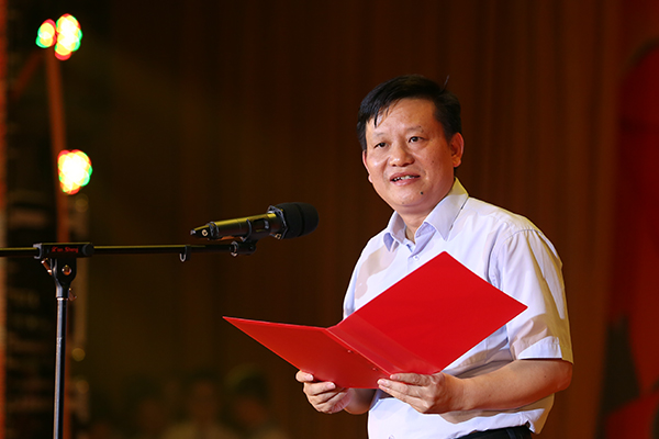 蒋洪新现场朗诵了来深圳途中即兴而作的诗:乾坤能大,江山无限。沧海一笑,念长天水阔。风景如画,有几人能赏?少年情怀,曾作天涯想。肝肠百炼炉间铁,功名尽在鹏城道。青山未老人已老,世事翻飞梦如霜。树高千尺不忘根,情深似海学子意。歌舞翩翩南国聚,大家共祝母校好!