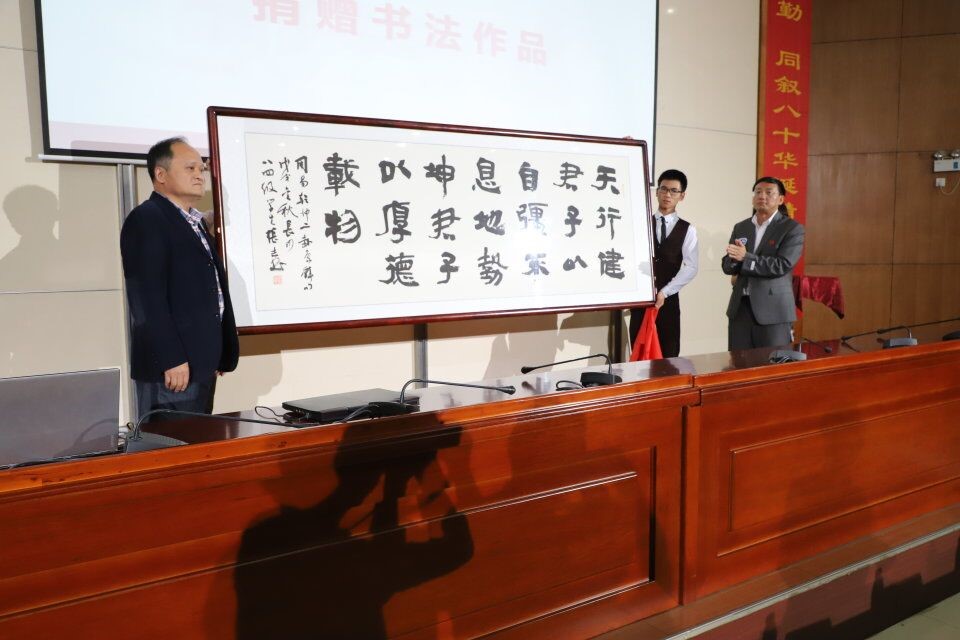 捐赠仪式上,何祖平、党委副书记谢罗庚、副院长张坚松、副院长邓文艳为捐赠并设立奖学金的校友以及88个以班级为单位进行捐赠的校友颁发了证书,并接受了校友为学院捐赠的书法作品。