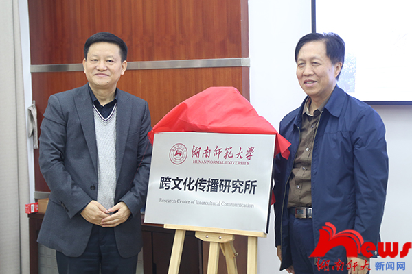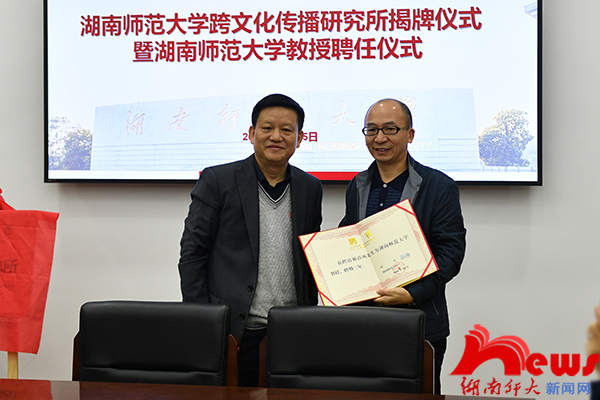 会上,蒋洪新为谢清风颁发了聘书,并与尹飞舟一起为跨文化传播研究所揭牌。