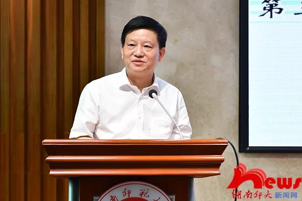 蒋洪新感谢彭学文、刘学文两位校友对母校的深厚感情。他指出,大学之重在于文化,独特的大学文化益于学校始终保持常青。代代师大人在“仁爱精勤”的文化涵养下,为了理想而奋斗,始终朝着光明的道路前进,推动了学校的繁荣发展。他表示,“腾龙楼”的命名带着校友的爱意和代代传递的精神,校友们的爱心之举为母校教育事业的发展提供了更好的条件,希望在校学子能继续传递大学理想,促进大学发展苟日新,日日新,又日新。他表示,学校将努力建设好“双一流”大学,提高办学水平,不辜负校友的信任和师生的选择,为社会发展贡献更多力量。