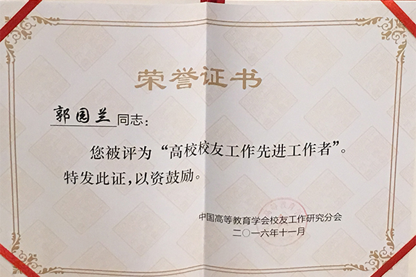 (供稿 校友总会)11月10日,中国高等教育学会校友工作研究分会第四届会员代表大会暨全国高校校友工作第二十三次研讨会在复旦大学举行。我校校友总会因工作成绩突出,首次荣获高校校友工作优秀单位,并被推选为该研究分会理事单位。我校校友总会办公室主任郭园兰同志因工作出色被评为“高校校友工作先进工作者”。