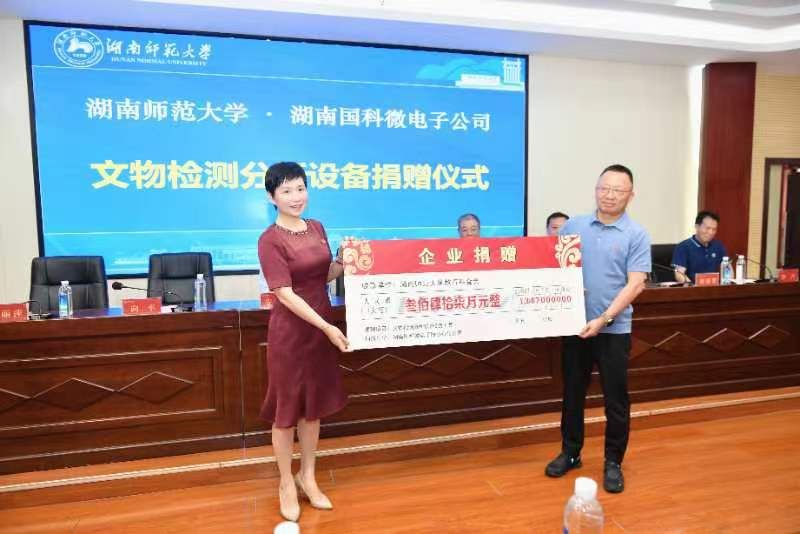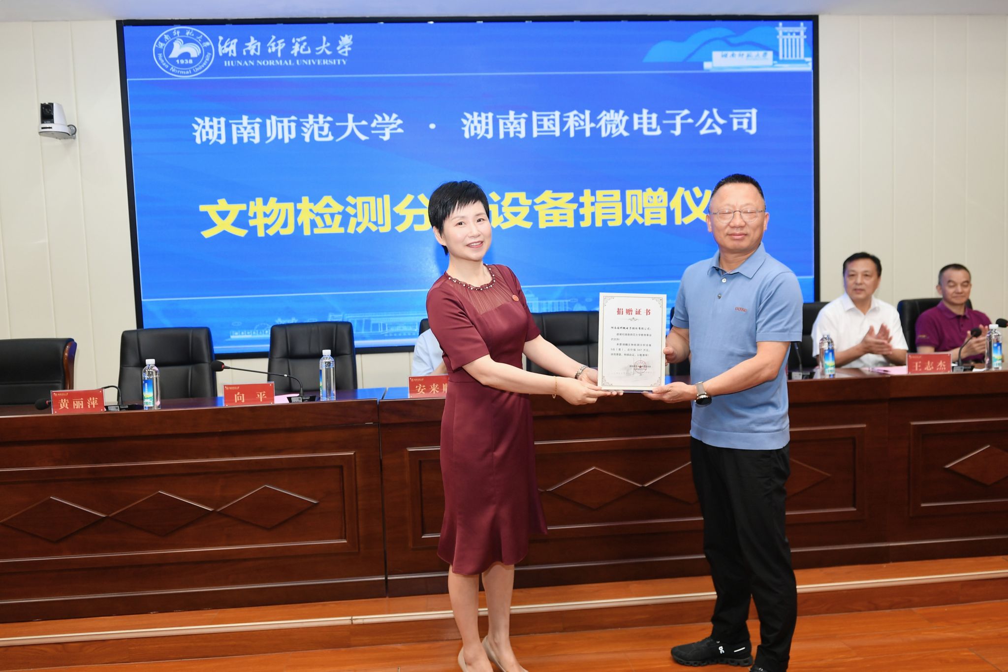 校企合作是文博学科发展的新途径,向平捐赠总价值347万元的文物检测分析仪器设备5台(套),颜盛繁suncitygroup太阳“好普励学文博专项基金”50万元,黄丽萍代表学校接受了捐赠。