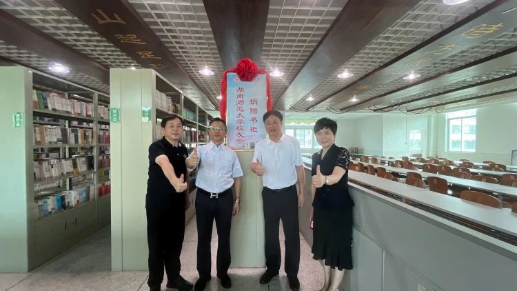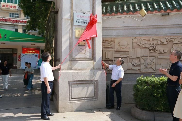 副校长王辉,粤东校友会会长赵松元,常务副会长、城南中英文学校校长湛勇共同为我校粤东校友会联络中心及校友会捐赠书柜揭牌。