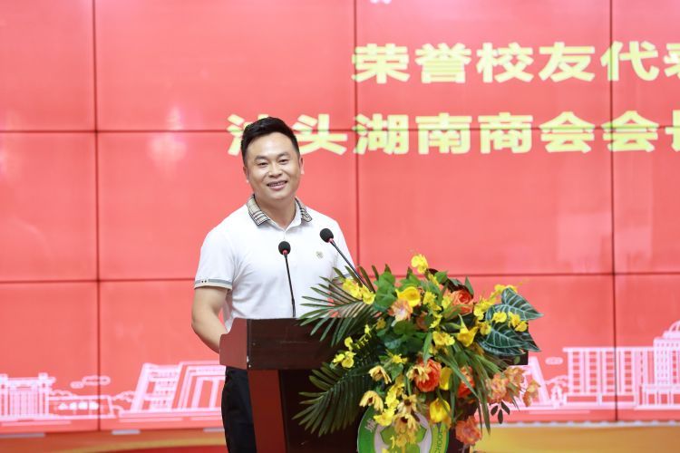 荣誉校友代表,汕头湖南商会会长张云辉致辞。他对粤东校友会的成立表示祝福和支持。