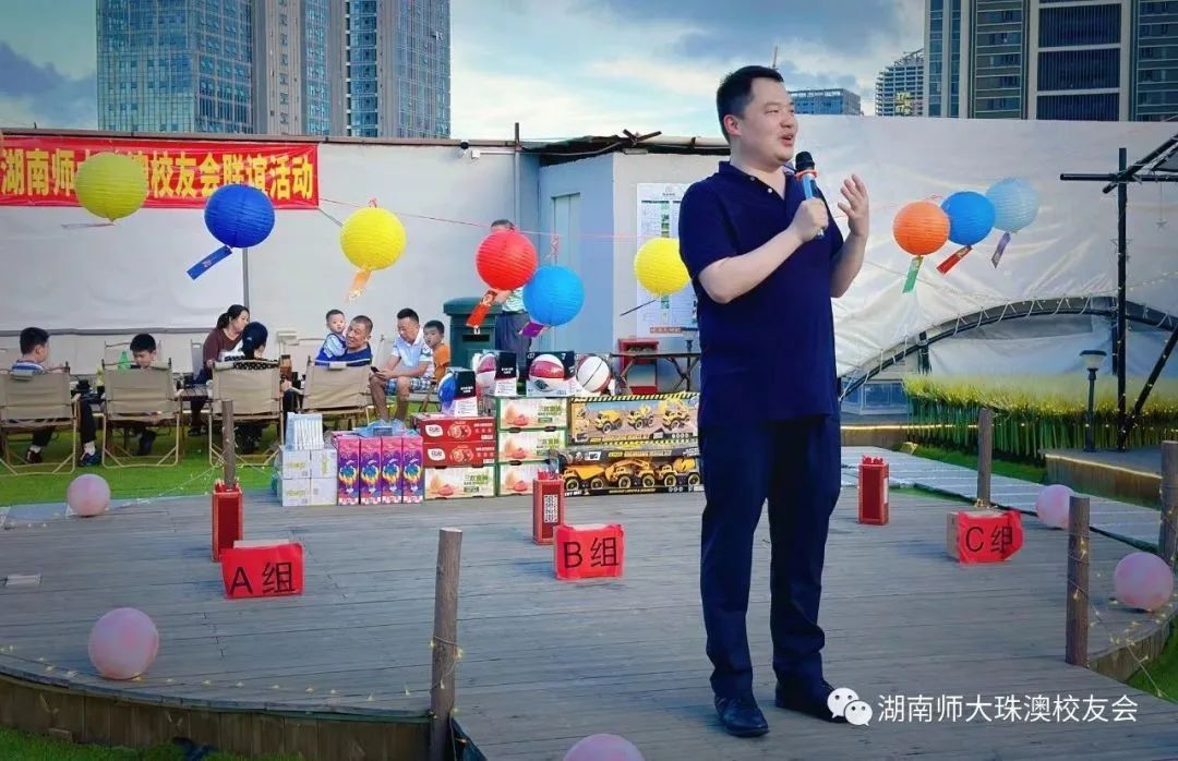 活动正式开始前,伍斌发表的讲话。他表示湖南师大珠澳校友会的初衷一直不变,“温度、活力、才气”,将是此次活动的出发点。