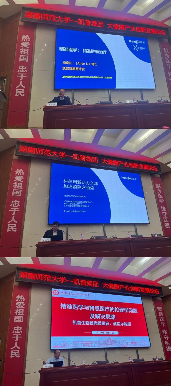 据悉,广东凯普生物科技股份有限公司是中国分子诊断领域领军企业之一,专注于分子诊断试剂、分子诊断配套仪器等核酸诊断相关产品的研发、生产、销售,特别在妇幼领域,是宫颈癌筛查的先行者、倡导者与推动者,是国家技术创新示范企业。荣获了福布斯中国“2020年上市公司潜力企业榜50强”等多项荣誉。本次论坛以“生命科学、医学伦理与精准医疗”为主题,以推动打造“三高四新”蓝图中具有核心竞争力的科技创新高地为立足点,加强我校与知名企业的深度合作,探索形成高校与企业一体推进健康湖南建设的生动样本,实现合作共赢。