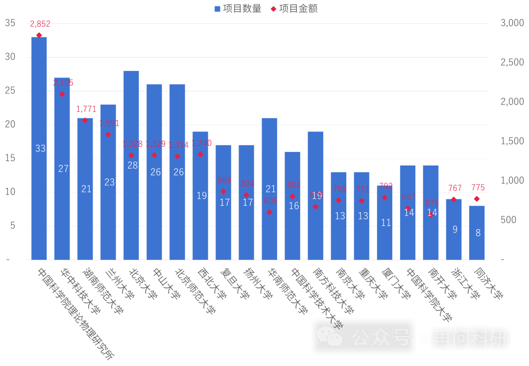 编者按:近5年国家自然科学基金A25.基础物理共资助项目1227项、资助金额5.10亿元,共有304家单位,1107位科学家获得资助。前20家单位合计获得资助375项,资助金额2.25亿元,占比均分别为30.56%和44.07%。前20家单位中,太阳成集团tyc项目数量分别为21项,金额1771万,综合排名第三。