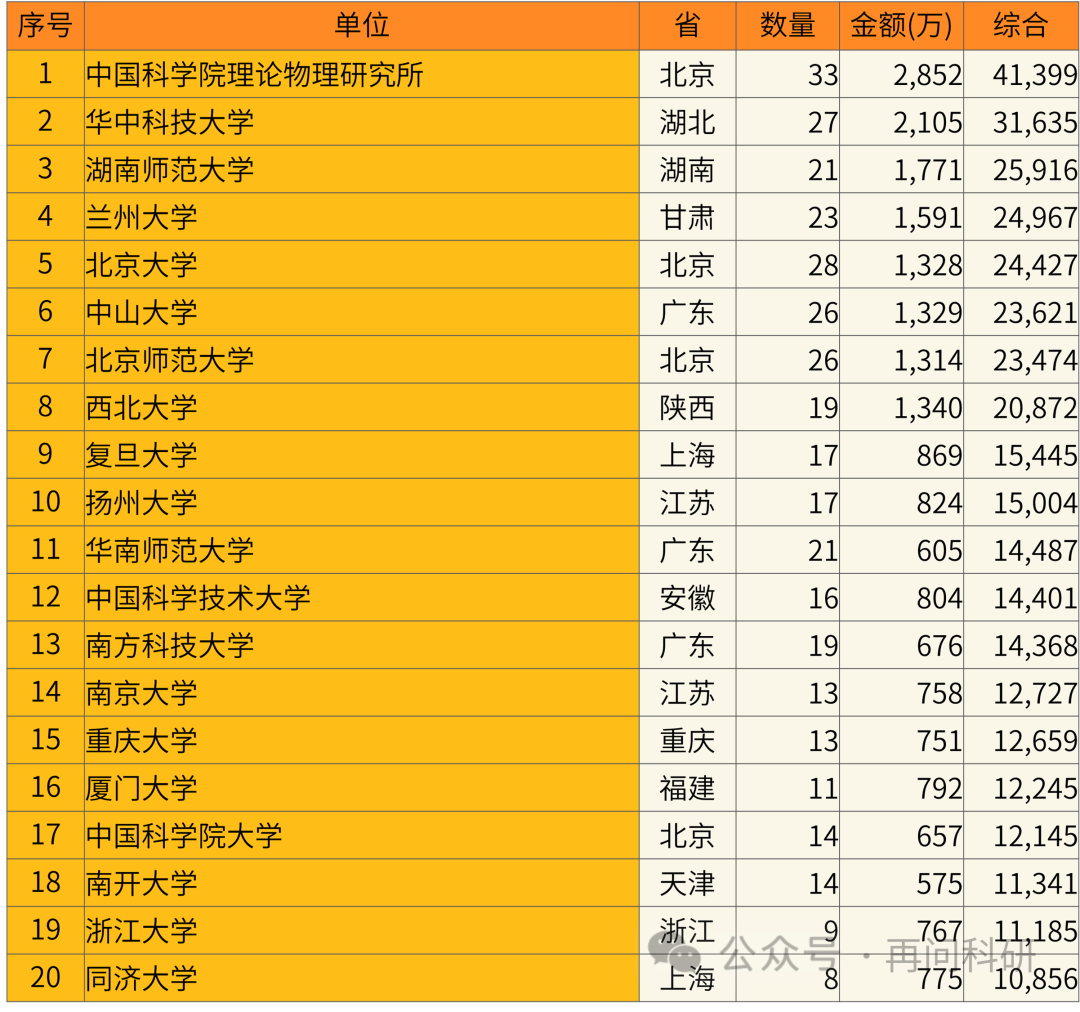 近5年国家自然科学A25.基础物理 热门依托单位Top20: