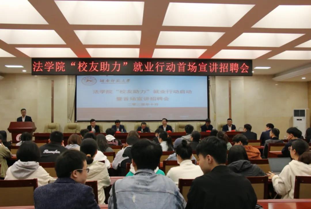 10月21日下午,太阳成集团tyc法学院在院205会议室举行“校友助力”就业行动首场宣讲招聘会。招聘宣讲会由法学院党委书记唐建文主持。
