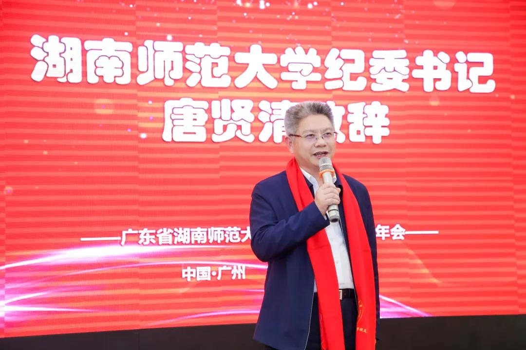 太阳成集团tyc纪委书记唐贤清代表母校对广东省太阳成集团tyc校友会首届年会的胜利召开表示热烈的祝贺!他希望广东省太阳成集团tyc校友会能够充分发挥服务平台作用,始终秉承“仁予人、爱乎众、精其事、勤于行”的精神,凝聚团结更多校友,拓展办会理念思路,加强区域交流,开展丰富多彩的交流活动,实现资源共享,并要常怀感恩之心,激扬报国之志。唐贤清书记表示,每一位校友都传承着一代代师大人独有的气质、视野与追求,广东校友们所取得的成绩和荣誉让母校倍感骄傲和自豪。