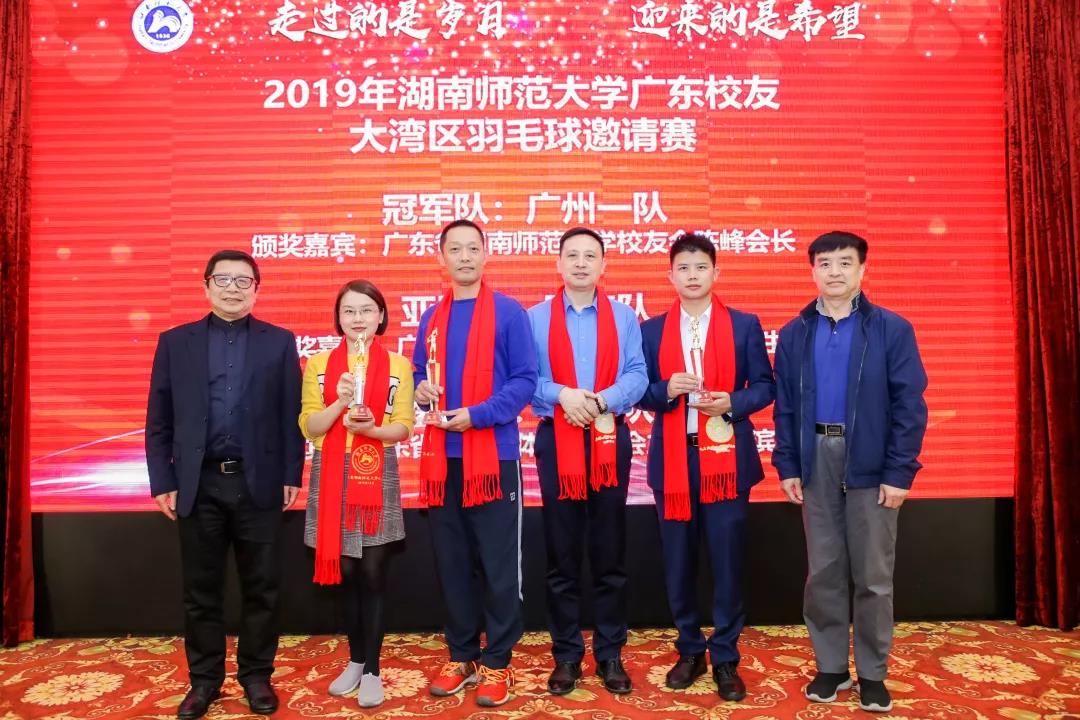 最终,校友会秘书长贺浪萍校友的《英雄赞歌》和音乐学院校友集体朗诵《你,何时再现》脱颖而出,获得本次朗诵比赛一等奖,太阳成集团tyc纪委书记唐贤清、校友总会秘书长杨玲以及广东校友会常务理事、朗诵比赛评委张晓莉上台分别为一二三等奖选手颁发了荣誉证书。接下来还为广州校友羽毛球俱乐部举行了隆重的颁奖仪式,主持人邀请陈峰会长、特邀嘉宾广东省文促汇法人主席张海英和体育委员会主席梅建滨一同上台,为获得“2019年广东校友大湾区羽毛球邀请赛”的冠亚季军广州一队、珠海队和中山队颁发了奖杯。