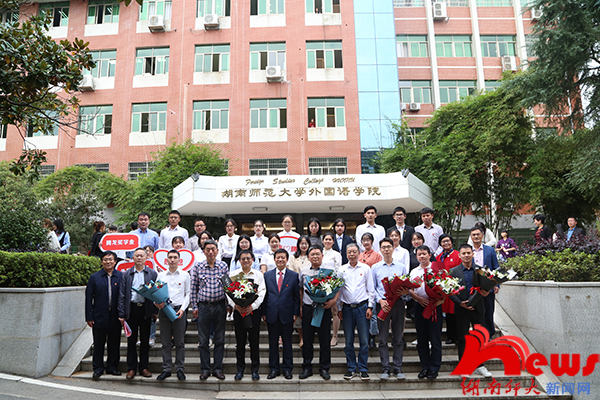 (记者 张明明 程鹏伟 刘馨怡 实习记者 罗田恬)10月24日下午,我校在外国语学院举行“腾龙楼”揭牌、“图书馆文化建设基金”捐赠仪式暨“腾龙奖学金”颁奖典礼。广州腾龙电子塑胶科技有限公司(以下简称“腾龙集团”)董事长彭学文,董事刘学文,总经理黄震宇,我校党委书记蒋洪新,副校长黎大志、周俊武出席仪式。仪式由校友总会秘书长杨玲主持。