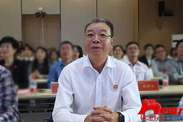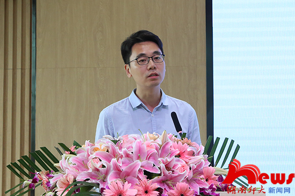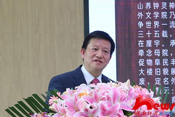 蒋洪新对“腾龙楼”的揭牌表示热烈祝贺,对腾龙集团的捐赠表示衷心感谢,并简要介绍了我校近期在各方面取得的优异成绩。他说,腾龙集团在我校文化基础设施上给予重要支持,有利于提升校园文化育人功能,助力学校“双一流”建设。最后,他与大家分享了“腾龙楼”命名背后的故事。