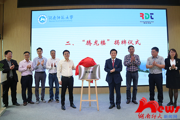 在热烈的掌声中,彭学文和蒋洪新共同为腾龙楼揭牌。