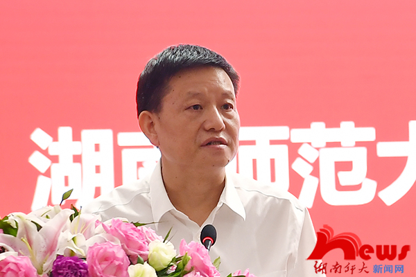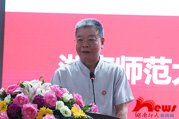 他对企业家校友们一直以来心系母校发展,关注乡村教育,重视人才培养,热爱教育事业表示感谢。他说,在座的企业家校友们不忘师范初心,发起并倡导设立“枫叶乡村教育振兴基金”,表彰扎根基层的优秀乡村教师,探索改变乡村教育现状的新路径,彰显了诚挚澎湃的教育报国热情。他指出,教育是乡村振兴的希望,乡村是中国教育的最大突破口。他表示,母校愿与各位校友企业家和乡村教师校友们携起手来,深耕乡村教育领域,一方面,借助信息化手段,加大师范生培养机制的改革创新力度,积极倡导“六个一”养成计划(学一门外语、懂一门艺术、会一项运动、掌握一门信息技术、读一批经典著作、写一手好文章),培育一批认同乡村、热爱乡村、致力于乡村教育的年轻人,实现“用最优秀的人培养更优秀的人”;另一方面多方动员,借助社会各方力量,发展和壮大基金,为扎根乡村教育一线的优秀校友们提升本领、开阔眼界创设更多条件,为校友成就事业搭建更为广阔的平台。
