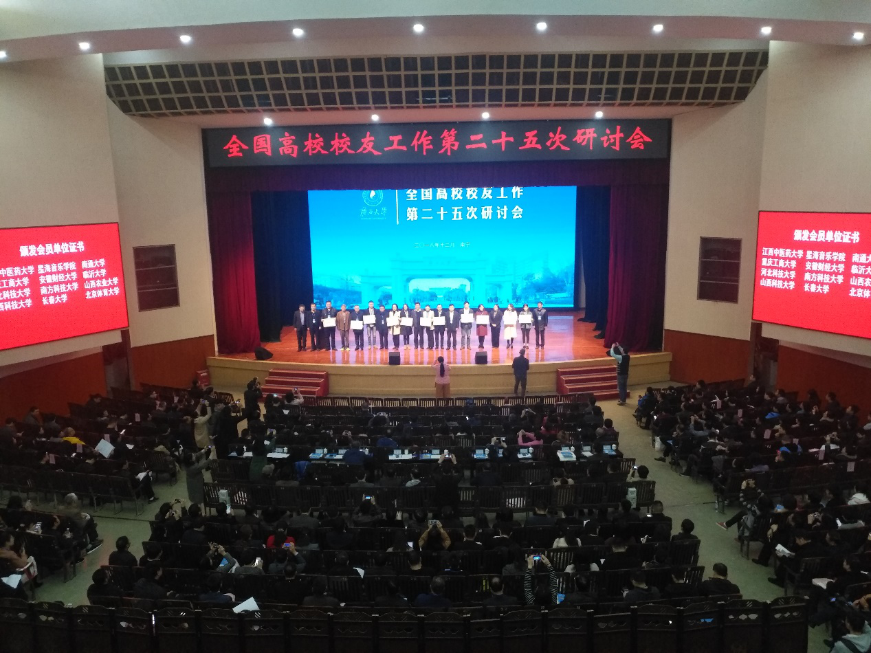 (通讯员徐倩曹文毓)12月26日至27日,由中国高等教育学会校友工作研究分会主办、广西大学校友总会承办的全国高校校友工作第25次研讨会在广西大学召开。来自全国292所高校的337位代表参会。会议围绕新时代校友工作,总结经验、展望未来。我校校友总会秘书长杨玲、校友总会袁鑫、徐倩与会,与参会同行代表积极交流。