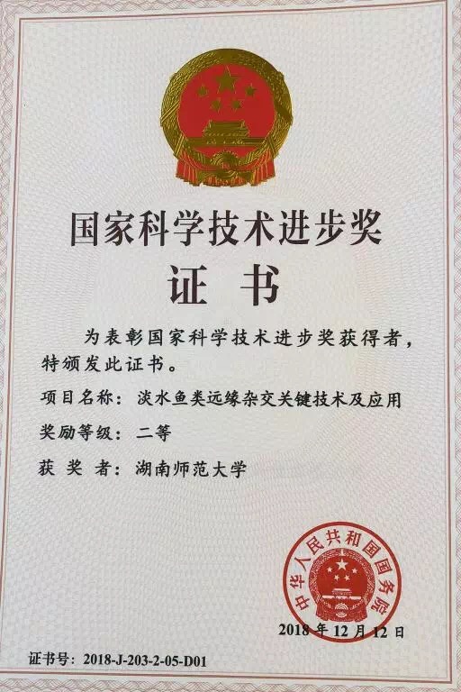 新年伊始,1月8日上午,2018年度国家科学技术奖励大会在人民大会堂隆重举行。习近平、李克强、王沪宁、韩正等党和国家领导人出席大会并为获奖代表颁奖。我校刘少军教授团队牵头申报的“淡水鱼类远缘杂交关键技术及应用”项目喜获国家科学技术进步奖二等奖,我校为第一完成单位,这是该团队继2011年后再次获得该类大奖。