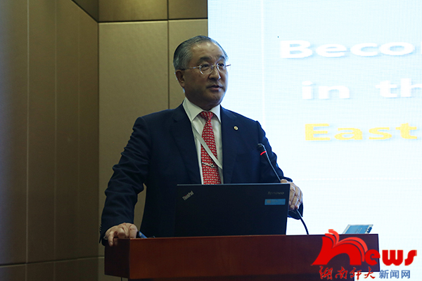 金道宗围绕“圆光大学的国际化战略:建设东亚经济共同体,与中国大学的合作”发表演讲。他认为,新时期的大学概念从传统的、以教育为中心转变为产学研一体化发展,圆光大学响应时代的呼唤,积极建设产业型大学。他表示,不同文化的交流碰撞为建设东亚经济共同体提供了重要契机,要积极开展以经济领域为基础领域的共同体活动,深化与中国大学的合作,将地区大学建设成人文历史的联络中心,共同带动东亚经济共同体的建设。