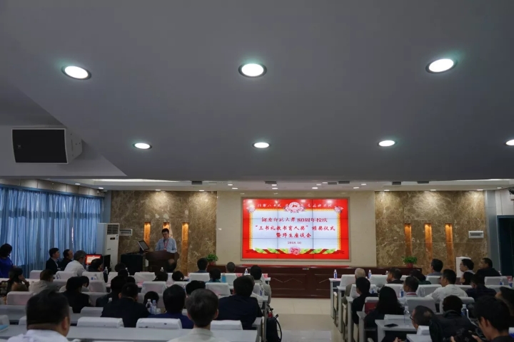 副校长匡乐满宣读了获奖教师名单。退休教师王发伯、文盛乐,在职教师朱晋、邹红梅获此殊荣。