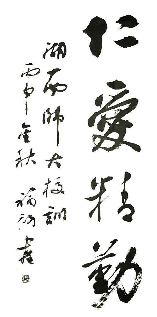 校长蒋洪新专门为此次作品展撰写前言,他说,吾校友诸君,或耕耘杏坛,或叱咤学界,或拼搏政坛,或驰骋商海……虽百业纵横,然仁爱之心、精勤之志永烙心间,焚膏继晷,薪火相传。今挥毫泼墨、以笔会友,乃感恩母校,同怀学源,共叙长情。