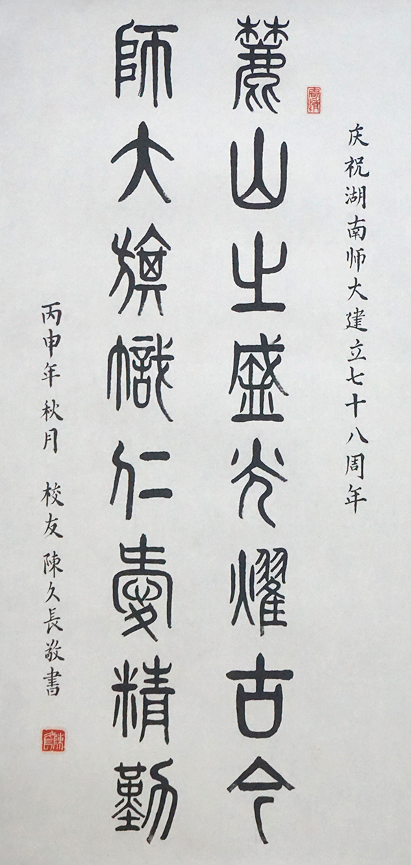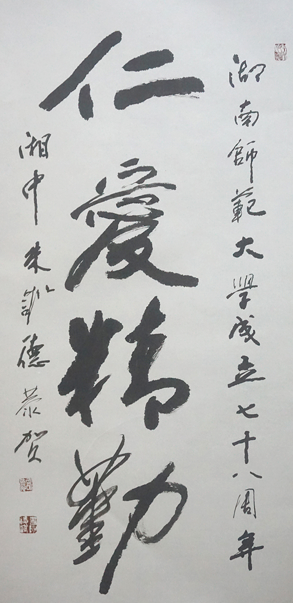 (通讯员 郭园兰)10月27日,是我校78周年校庆纪念日。为展现我校“仁爱精勤”的精神风貌,弘扬师大精神,向学校78周年校庆献礼,我校校友总会特举办“‘仁爱精勤’校友书法作品展”, 校友们以我校校训“仁爱精勤”为内容,积极参加此次活动,齐祝我校建校78周年。