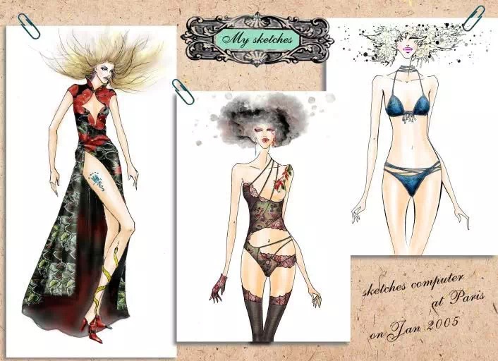 服装款式设计、图案设计、描样、钉珠、刺绣,这凝聚了艺术和技术的精华,点缀了高级礼服的流光溢彩,风情万种;亮片、宝石及绣线将设计方案化为舞台上闪亮精致的华服。背后是设计师独到的设计理念和耐心,毅力的结晶。留学生活也是很苦的,半工半读,自己赚生活费,苦逼得很,基本路上小跑,地铁上补觉,上厕所都没时间,周末做一个礼拜的饭(法国超市下午8点就关门,周日也关门,周一到周五根本没法采购,无数次抱怨法国人太懒了……有钱也不赚……)学习期间参加了一些活动,得过一些奖,作品在巴黎展览中心展览过,那些年,如同所以其他学艺术的留学生一样在艺术繁华的街头亢奋的奔跑,不知之所疲。当年的esmod学校竞争激烈,淘汰制,所以鸭梨山大……所幸,毕业作品初稿就被Lesage选中(lesage是法国知名的haute couture 工作室和学校,Chanel,CD,YSL等大牌的高级时装定制所之一),拿到了奖学金整个设计作品在lesage工作室完成,由此见证了法国高级定制的正真含义。最终毕业设计作品获得了Lesage第2名的成绩,唯一一个内衣专业获此奖项的毕业生。