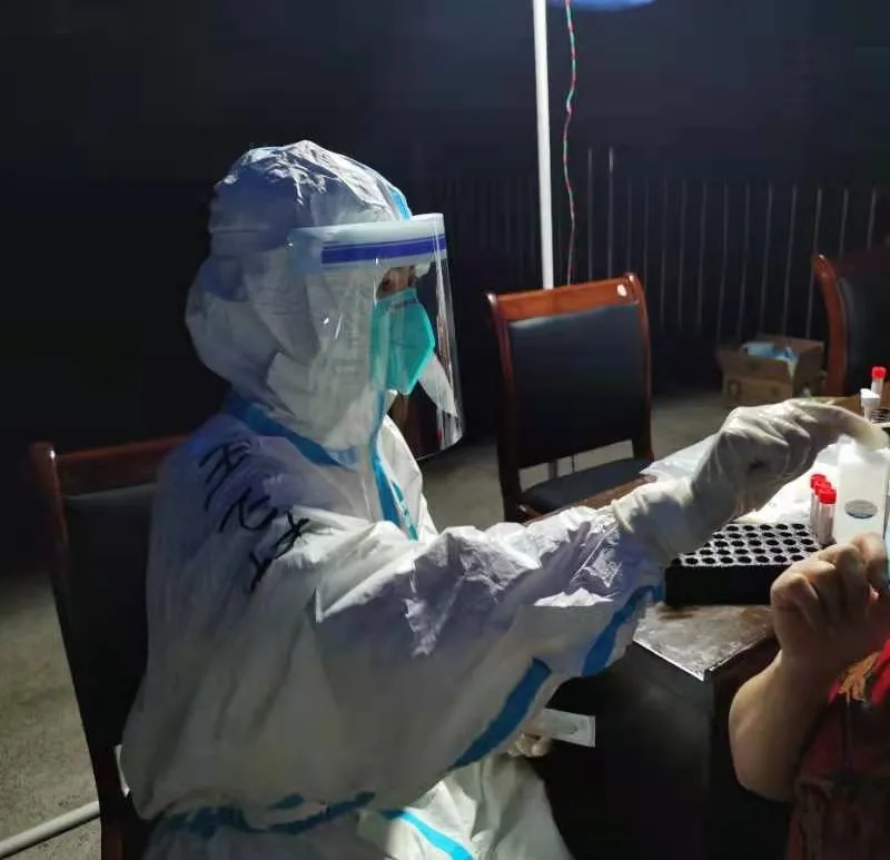 “我们身穿防护服在移动负压核酸检测车里日以继夜的工作,酷暑难耐,汗水湿透了衣服,双手被汗水浸泡得发白,但大家没有任何的抱怨和迟疑,心中只有一个目标,那就是尽快完成检测任务,早日控制疫情蔓延。”