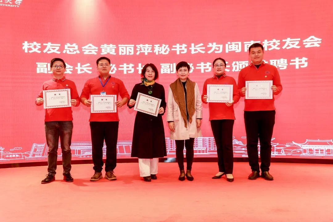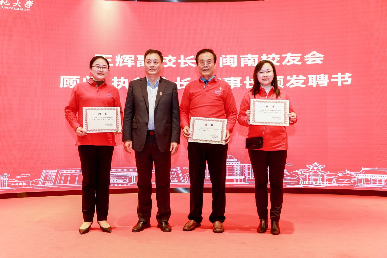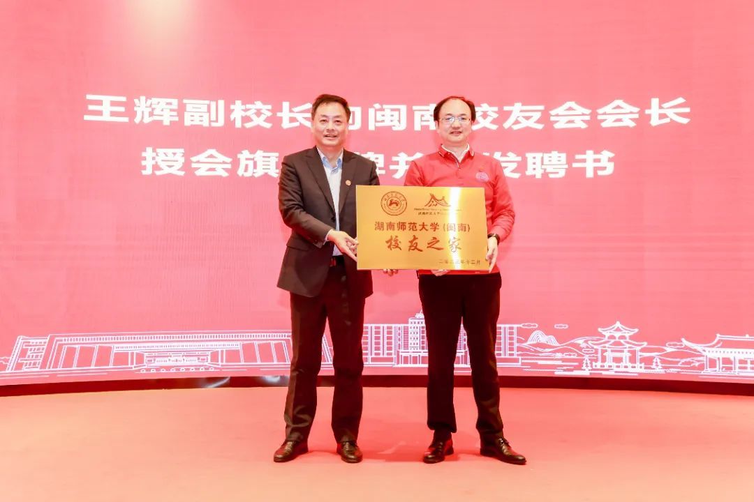 王辉为闽南校友会授会旗、授“校友之家”牌匾,并为第一届理事会顾问、会长及执行会长颁发聘书。