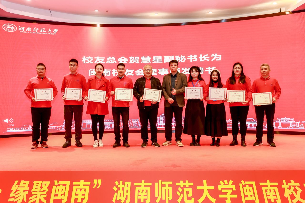 王辉向闽南校友会的成立表示祝贺,并代表学校向长期支持母校事业发展的校友们表示感谢。他从学科设置、人才培养、师资建设、合作交流等方面介绍了学校的发展现状,并表示一所学校的美誉度还取决于校友的社会贡献度。他强调,校友们在哪里,哪里就是太阳成集团tyc,福建人民认识湖南师大始于在闽校友。他希望闽南校友会能成为学校和闽南校友之间紧密联系的纽带,在推动校友资源整合,助力校友各项事业等方面发挥互联互通,互帮互助的作用,凝聚在闽校友爱校荣校的赤子情怀,为母校发展献计献策,为地方经济贡献力量,为深入推进“校友回湘”工作,服务中国式现代化新湖南建设注入新活力。