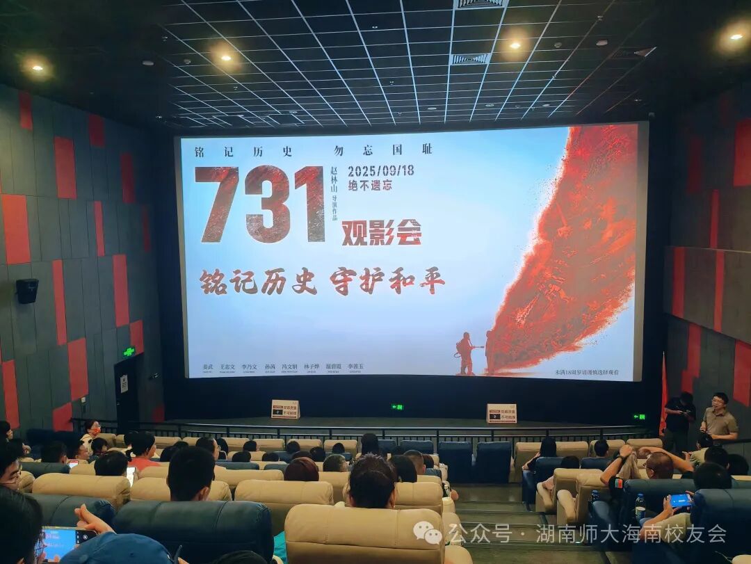 9月21日,我校海南校友会组织校友及家属开展观影活动。此次活动选取历史题材电影《731》,通过观影,大家重温历史真相,接受了深刻的爱国主义教育。校友会执行会长王益文及近百位校友和家属观影。