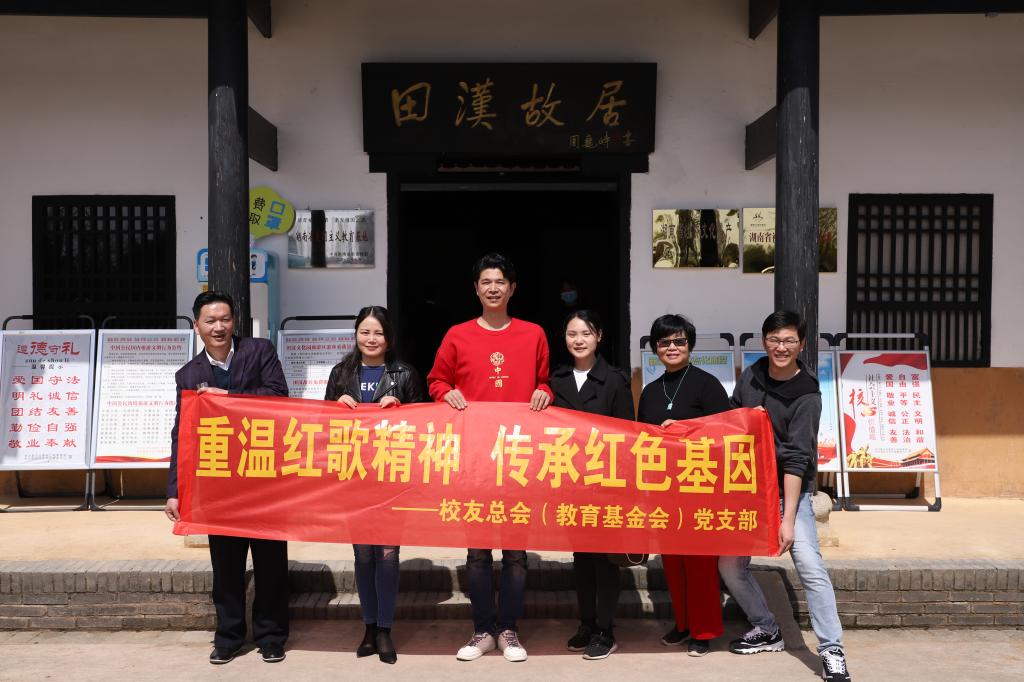 3月25日,为庆祝建党100周年,开展党史学习教育,校友总会(教育基金会)党支部成员前往田汉文化园开展“重温红歌精神,传承红色基因”主题党日活动。全体党员在讲解员的带领下走进了田汉艺术中心陈列馆,认真了解国歌词作者、中国革命戏剧运动的奠基人田汉先生的生平业绩和文学艺术成就。通过本次活动,大家深刻地感知到了国歌所蕴含的斗争精神、团结精神以及进取精神。