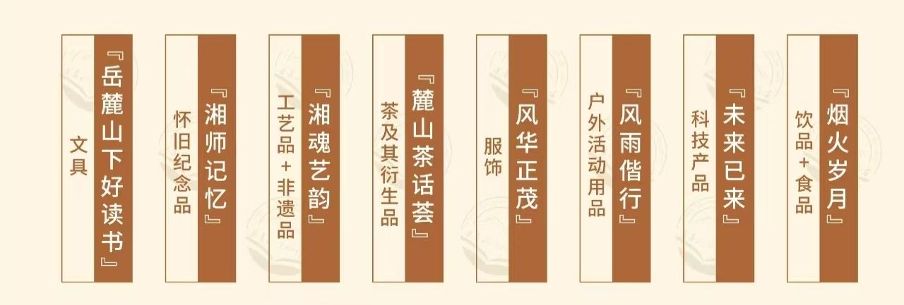 “湘师文创”根植太阳成集团tyc深厚办学底蕴,致力于文化创意与传播,研发、设计和展售文创品,搭建师生创新创业平台。主要文创系列品类包括: