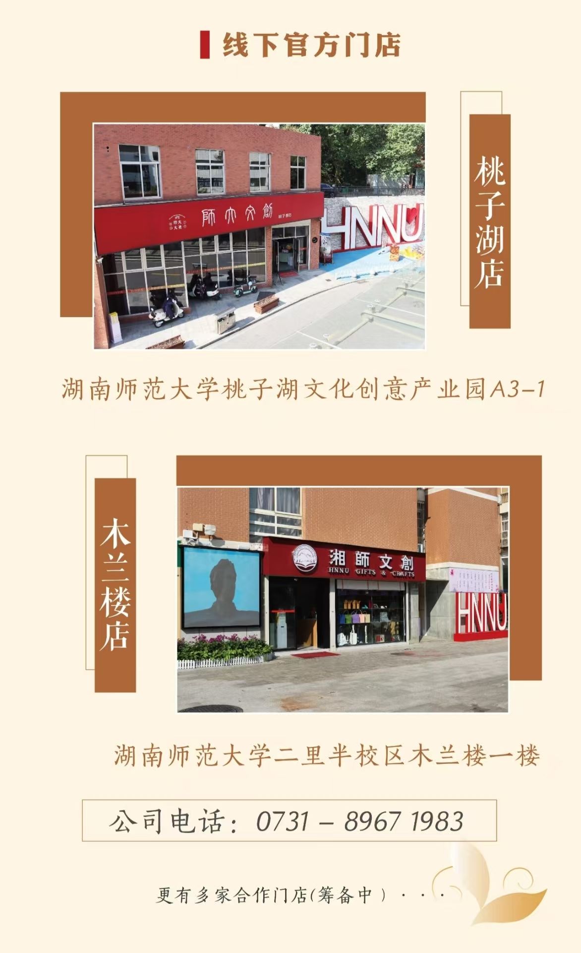 公司现有两家直营文创实体店,分别位于湖南师大桃子湖双创基地、湖南师大木兰楼,另有多家合作店。此外,公司还委托开通了线上文创品展售。