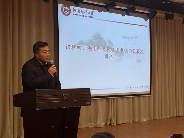 仪式第四项,我校党委书记李民教授讲话,他对校友们荣归母校表示热烈欢迎,向校友们介绍了校院在综合竞争力、教学科研、师资队伍、人才培养和办学条件等方面取得的成就和发展规划,并对校友们表达了良好的祝愿。