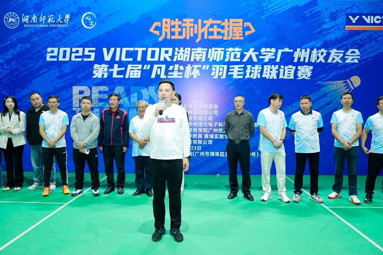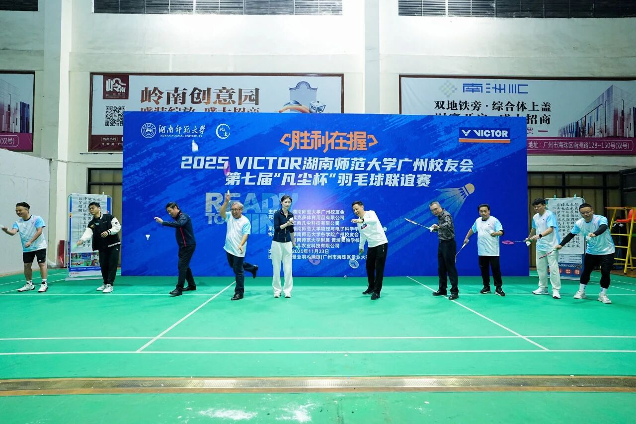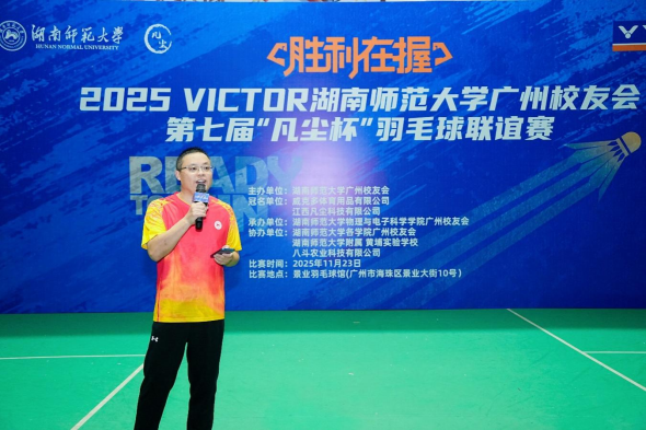 近日,我校广州校友会第七届“凡尘杯”羽毛球联谊赛在广州市海珠区景业羽毛球馆圆满结束。我校校友总会副秘书长贺慧星、物理与电子科学学院(简称“物电院”)院长刘红荣教授,广东校友会会长、广州校友会会长陈峰,广东校友会常务副会长兼秘书长、物电学院广州校友会原会长贺浪萍等嘉宾参加活动;羽毛球世界冠军邓旋受邀出席。