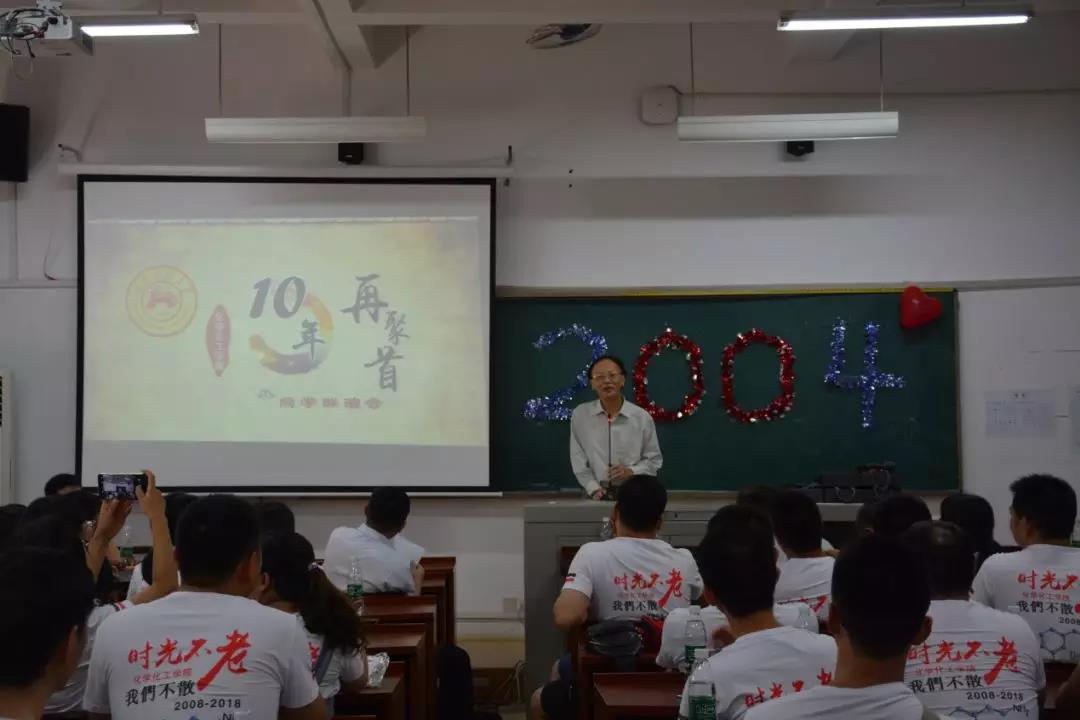 7月21日上午9时30分,化学化工学院2004级毕业生在化工院117举行毕业十年聚会。并邀请了院长陈波老师,离退休处处长王齐老师、原院长尹笃林老师,原党委书记易理国老师、原化学系系主任曾跃老师、制药系主任钟世华老师、汪萍老师、余丽萍老师、石爱民老师以及2004级辅导员罗艳老师一同参加。