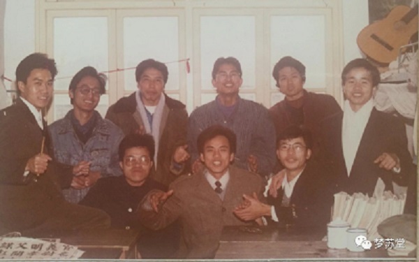 同宿舍的大学同学在齐唱《漂亮的姑娘》,老二刘光勇在拍照。