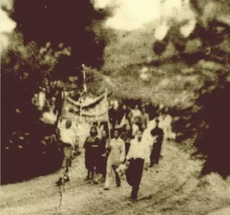 1947年6月2日南岳反内战,反饥饿,反迫害大游行。图为国师游行队伍从校本部出发时的现场。