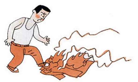 如果身上火势不大,可先将衣服脱下,如果不好脱,可直接撕破或者剪破它,总之应当尽快脱离着火的衣物。