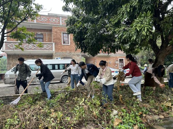 研学团参观了中共三大遗址纪念馆,对中共三大召开的历史背景、会议议程,重要参会人员及重大历史意义进行全面了解。缅怀先烈,重温历史,接受了一场思想的洗礼。在广东省“百县千镇万村高质量发展工程”首批典型村白坭镇富景社区,同学们深入学习了社区“一网双擎三元四治”的基层融合治理新模式,在社区党委书记陈伟标的带领下为社区清除杂草,参与人居环境整治,躬亲乡村振兴实践。