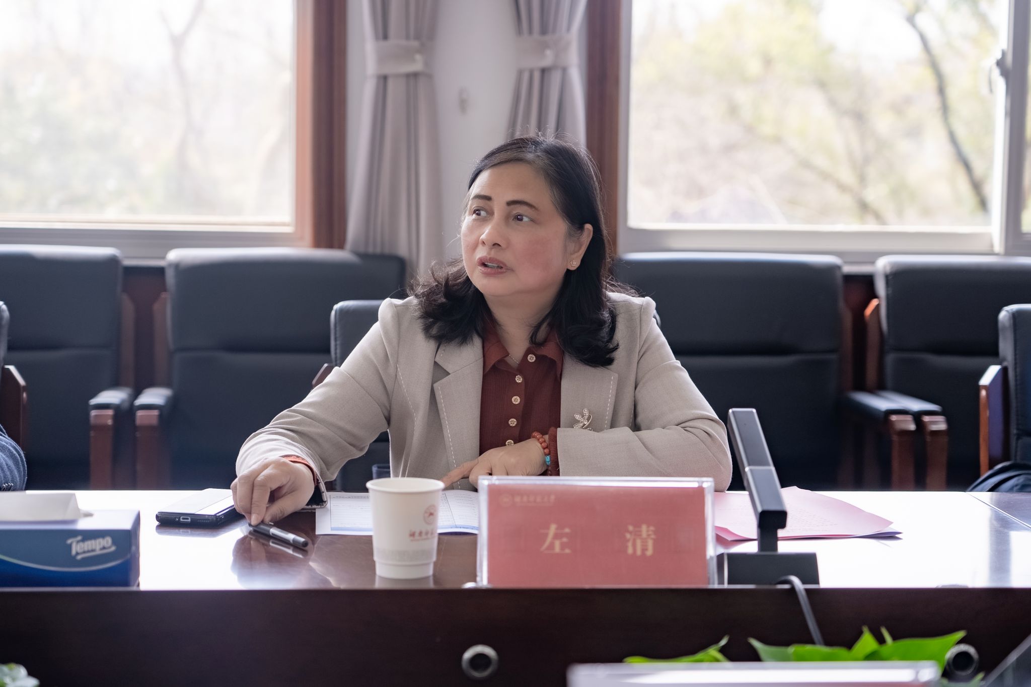 左清对我校“校友回湘”工作给予高度评价。她强调,“校友回湘”工作是省委省政府极为重视的一项工作,已被列入省政府年度工作报告。统计指标的制定遵循科学性、针对性和可行性的原则,紧密围绕校友回湘工作方案中“五个加”具体内容展开。她期望各高校能够齐心协力,高质量推动校友回湘各项工作。