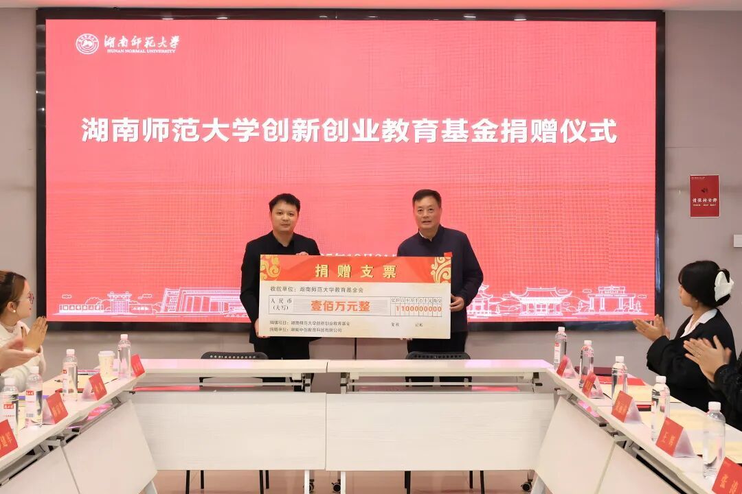 我校公共管理学院2019级校友、湖南中创教育科技有限公司CEO彭建军作为捐赠代表发言并表示,企业将全力支持学校创新创业教育。企业将开放自身资源,为创业项目提供全流程支持,优先对接校友项目。科技浪潮下师范院校可共享时代红利,期待与学校、校友开展优质项目合作,实现互利共赢。